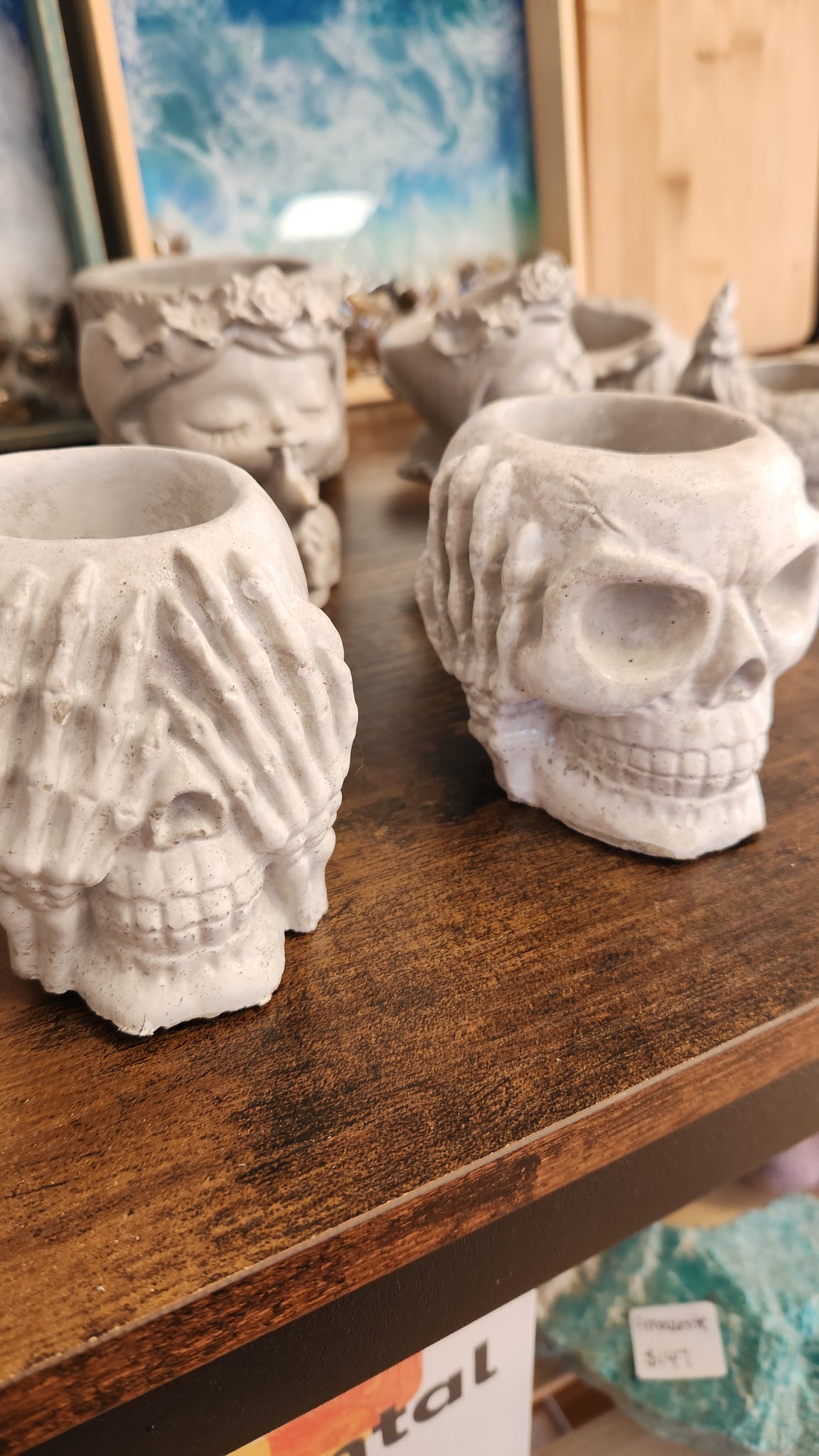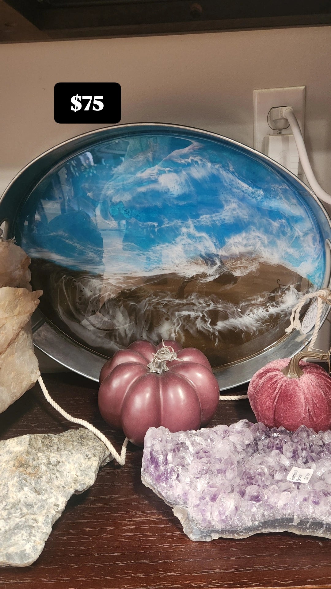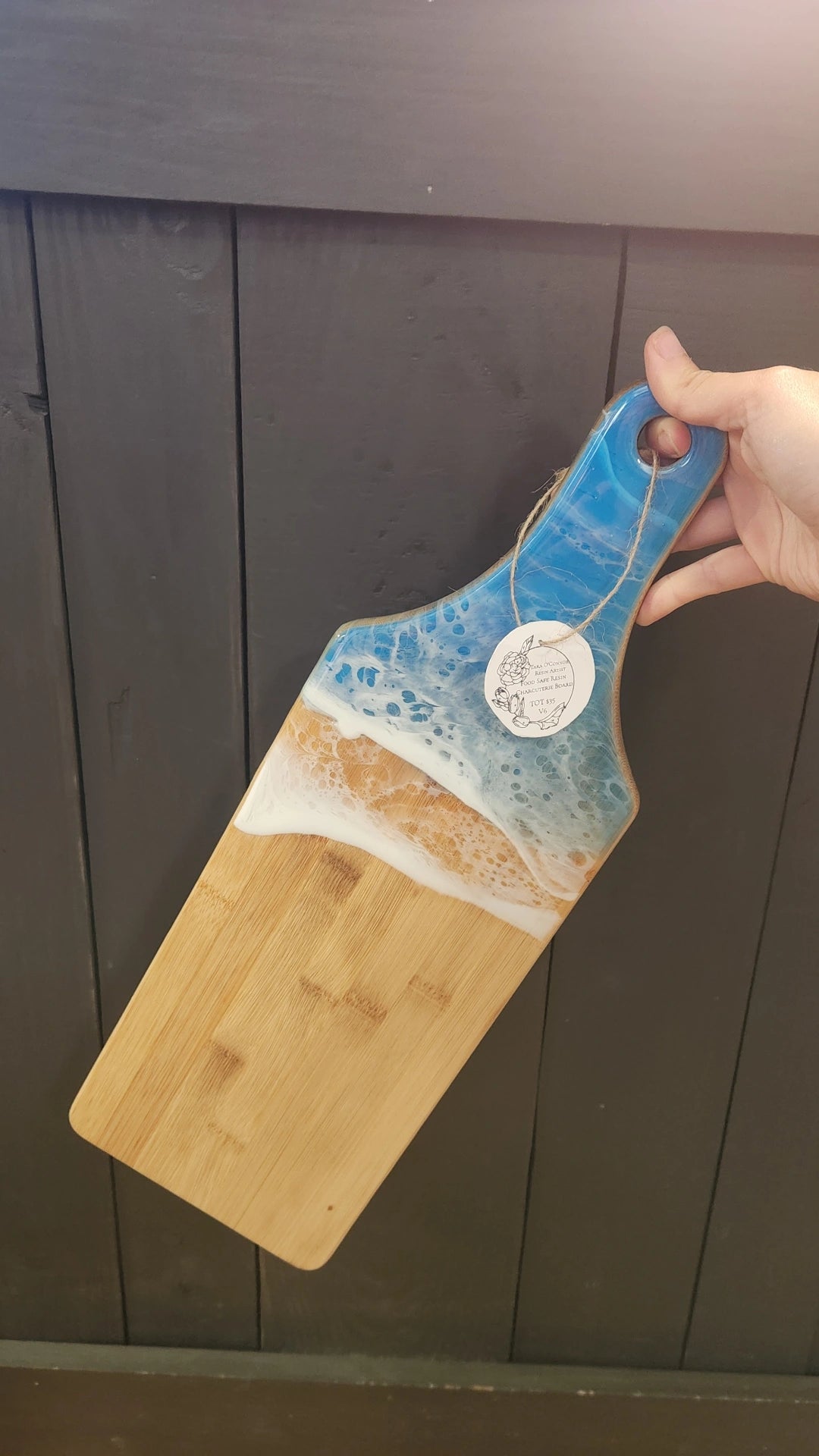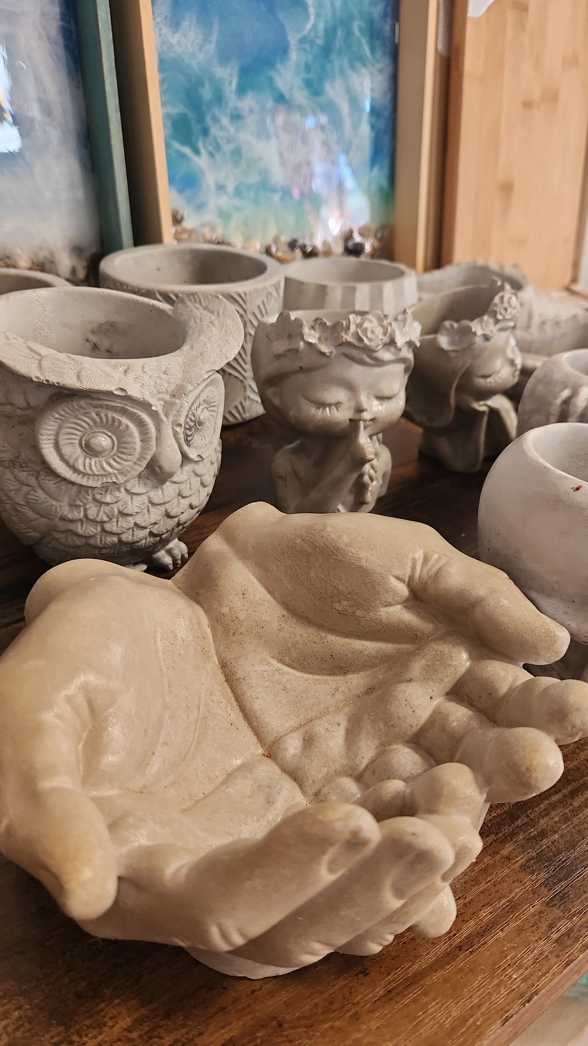 Handmade Resin food-grade trays, charcuterie boards, floral necklaces & concrete Planter by Tara.
