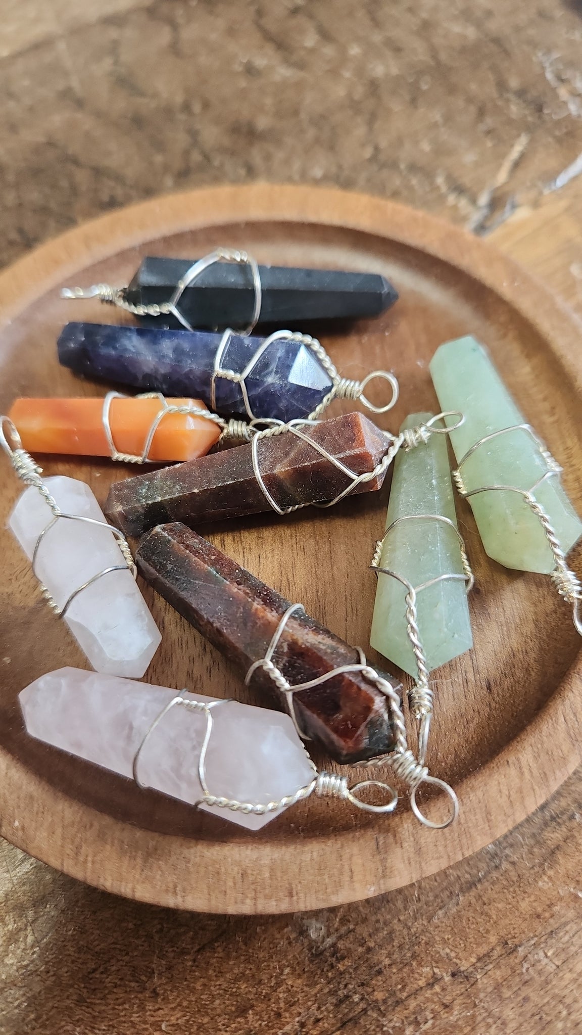 Double terminated genuine crystals wrapped in metal alloy making them great and simple pendants to wear or add onto car charms or keychains.